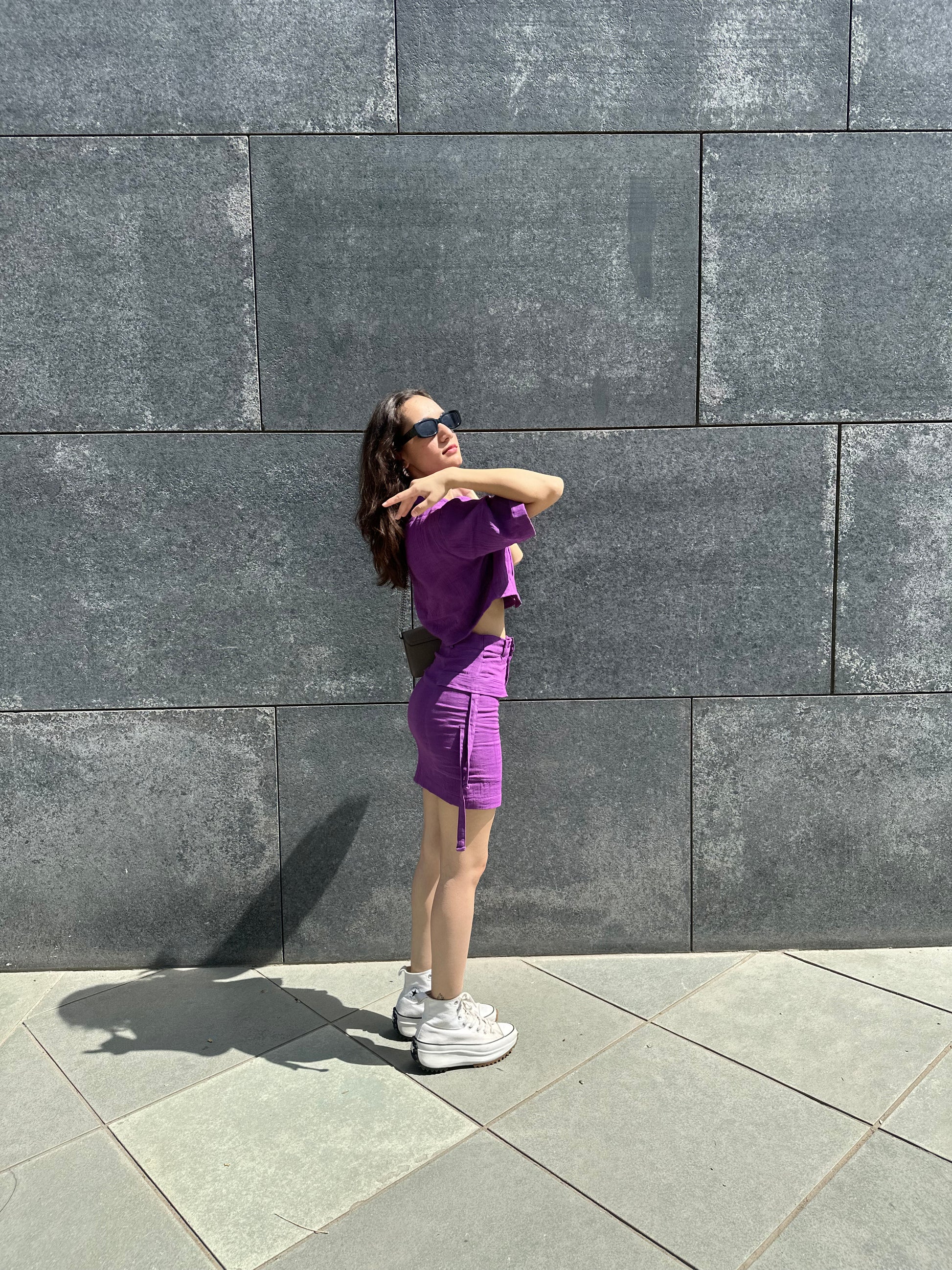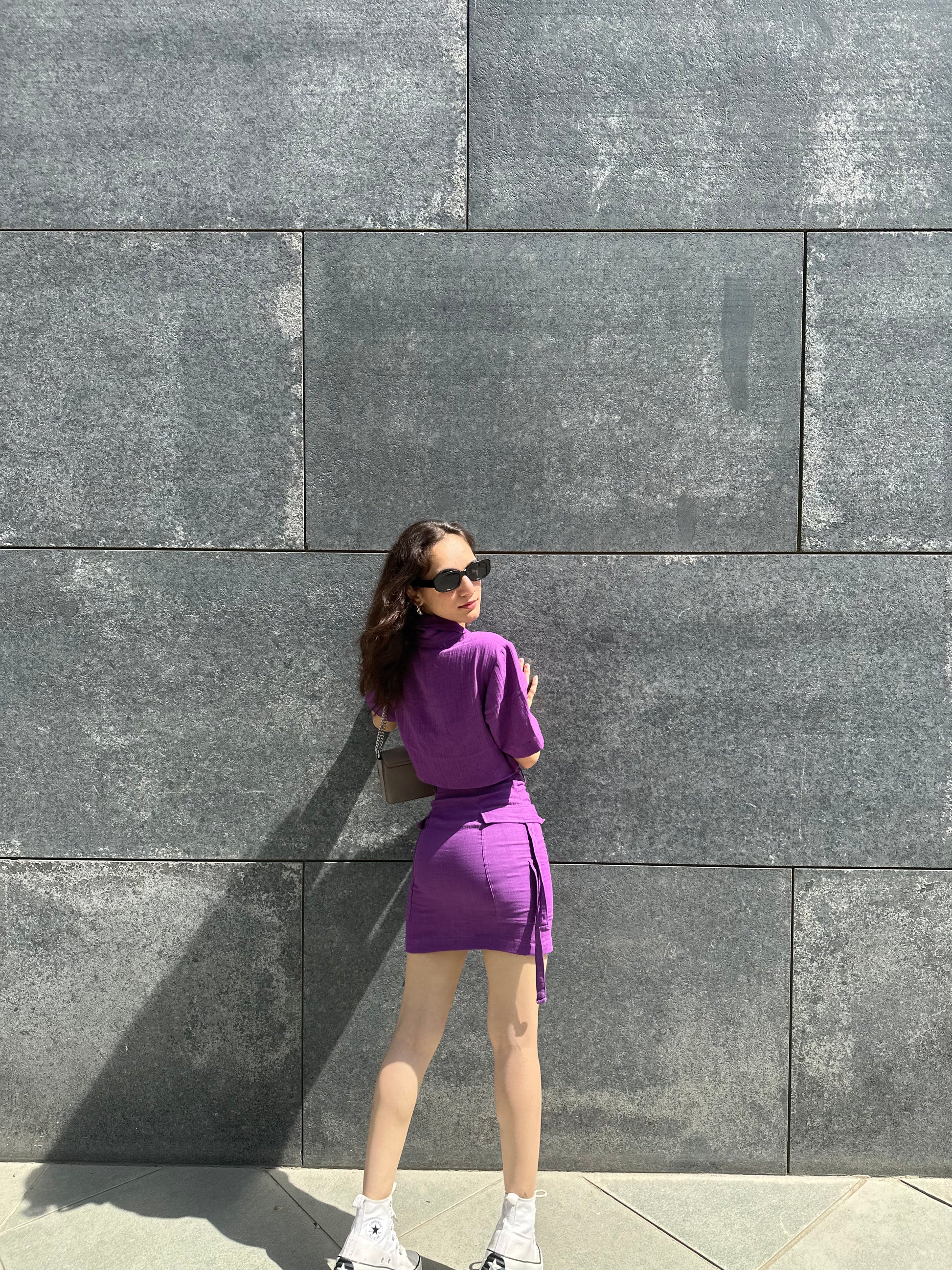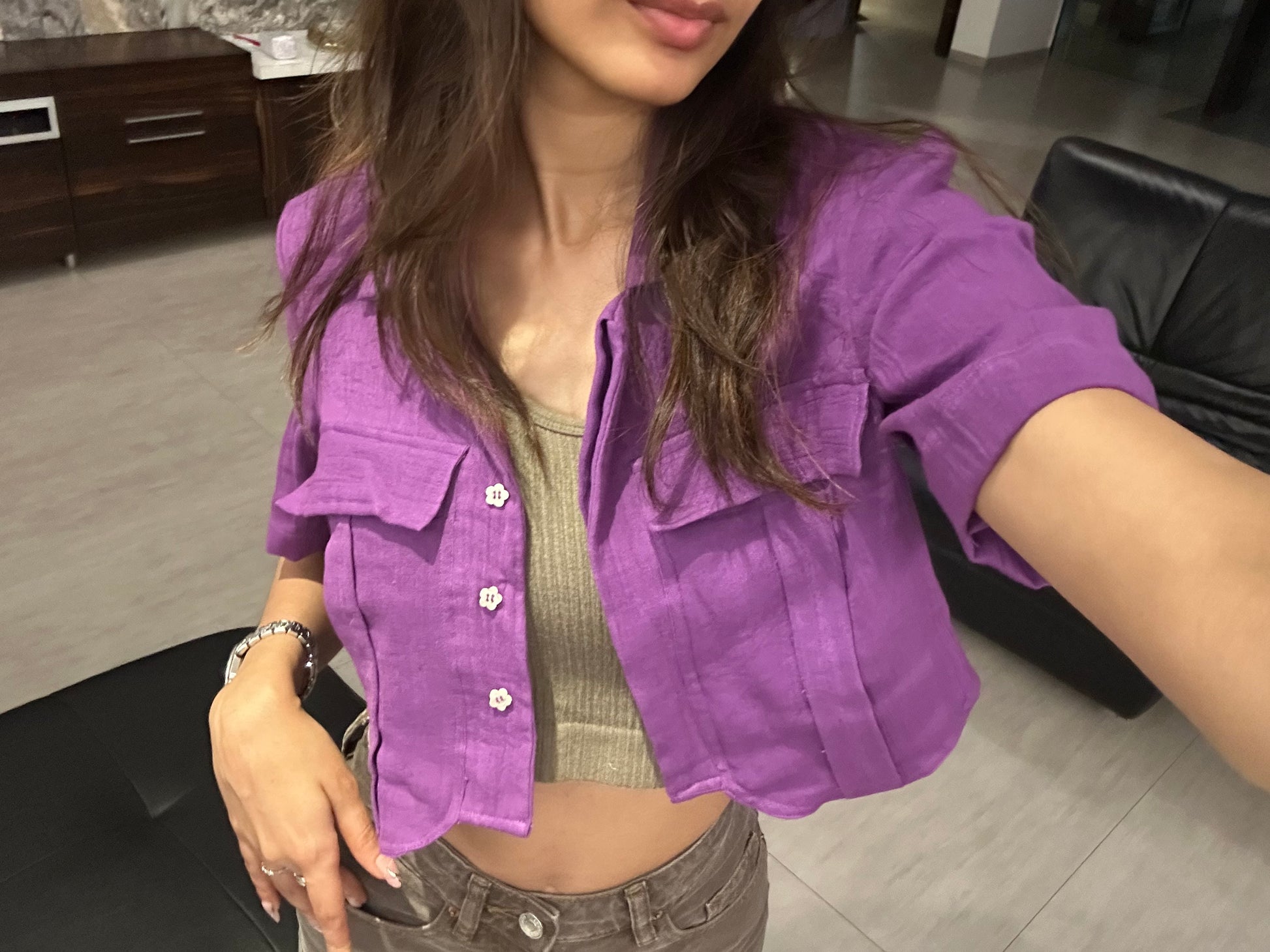 The Amethyst Cargo Set is a casual yet chic co-ord set, made with 100% cotton fabric. This set is made with a breathable double cloth. The A-line skirt has a zip and hook at the front along with two cargo pockets with cute tie details. For maximum utility, the cropped collared shirt has two pockets with flap detailing.💟