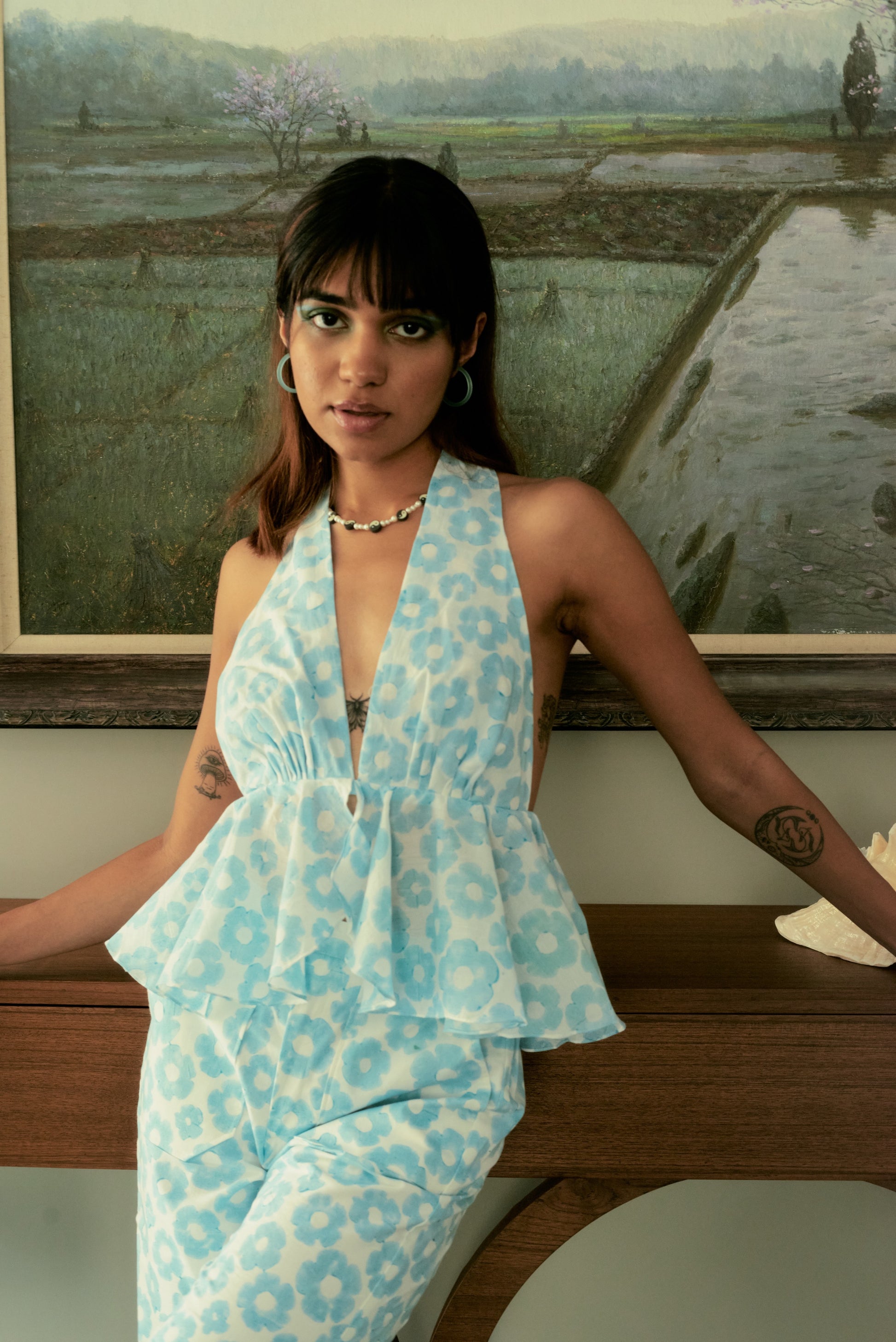 A versatile fully lined halter top with ties at the neck and elasticated at the back, allowing for easy adjustment and added comfort. The Peri print is hand-blocked by our skilled artisans on a lightweight and breathe-able, 100% cotton mulmul fabric, making it perfect for the summers.