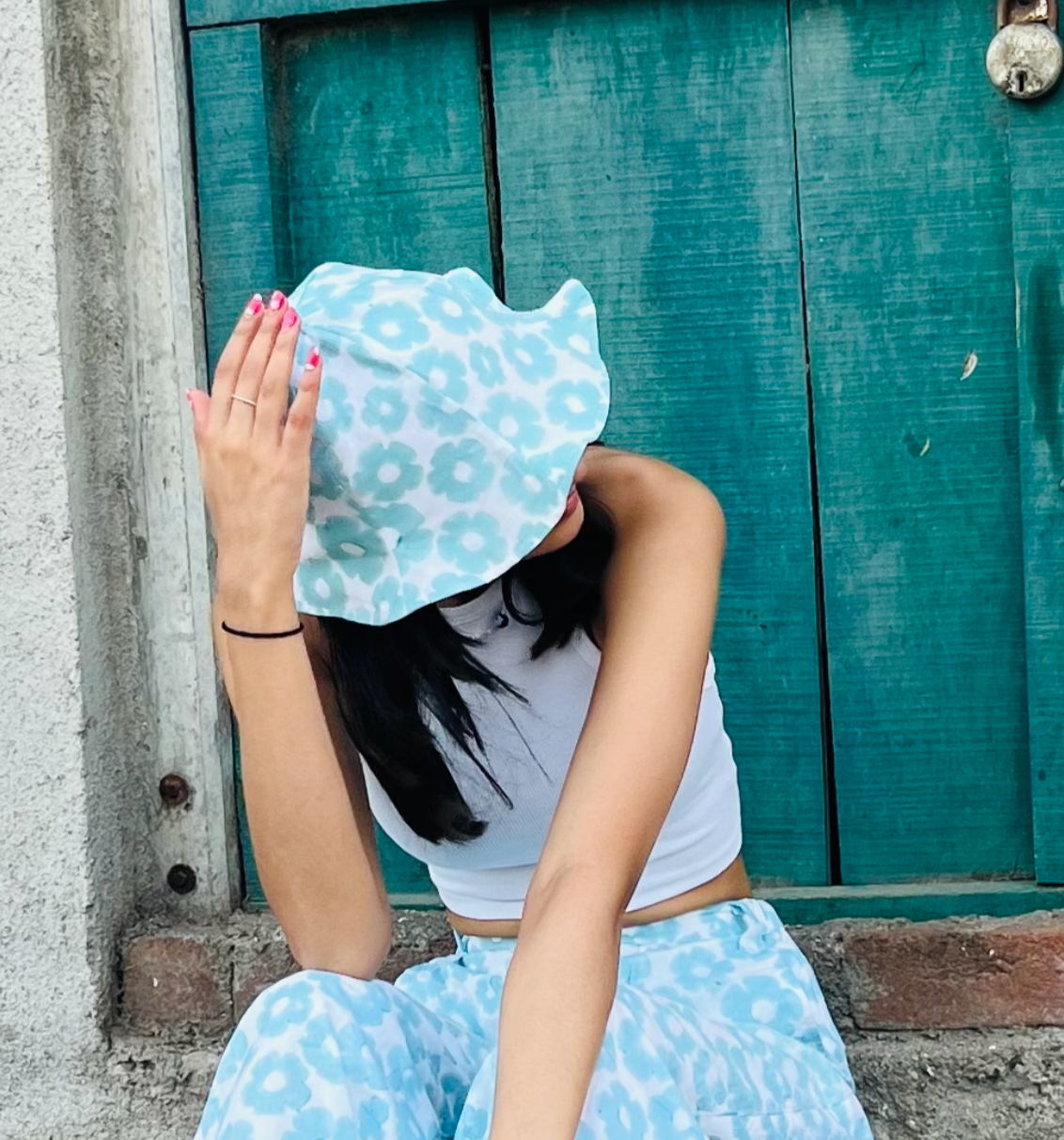 A cute little summer hat cut in the shape of a tulip! The hat is made from our 100% mulmul fabric, fully lined with cotton and stitched together by six panels. Not your basic bucket hat!